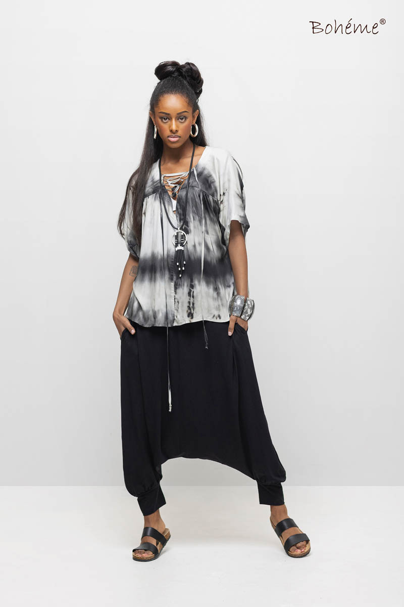 Top tie-dye Black print