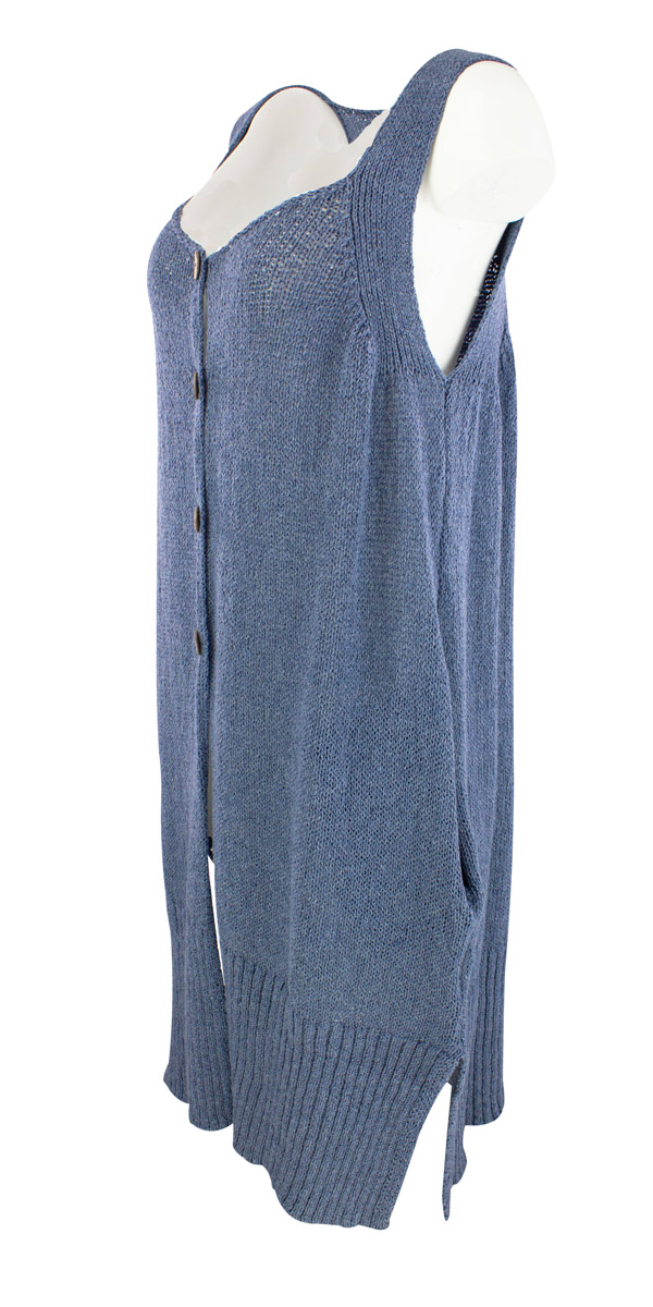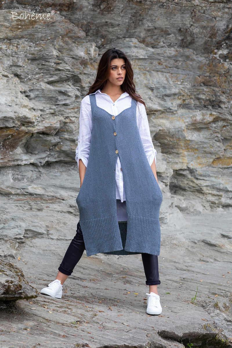 Long waistcoat in cotton knitComes in two sizes - 2(38/44) and 4(46/50)<br />Lenght in size 2 is 99 cm.Hipsize 61 cm