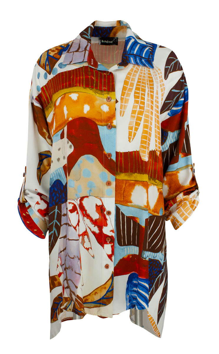 Skjorte k.arm trykk Flerfarge